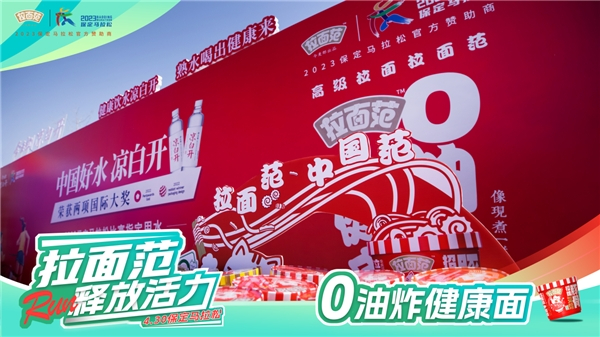 从人手一桶面你的参赛包物资补给,到比赛当日的赛场能量补给站和终点完赛区的体能恢复服务,以及家庭跑、健康跑等各环节赞助,拉面范在保定马拉松赛场内外掀起了一阵“炫面热潮”。