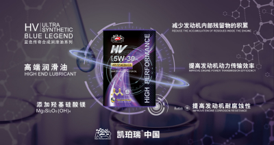 蓝色传奇HV全合成机油是凯珀瑞旗下的产品,它由全合成基础油和特殊添加剂,以及羟基硅酸镁元素调配而成。能有效提升发动机抗磨性能,提升发动机动力传输效率,减少发动机内部残留物的积累,提高发动机耐腐蚀性,推荐适用于2.0T以下发动机车型。