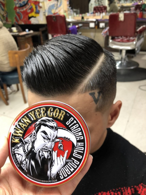 为什么会问这句话,因为不少分享者在展示帅气油头的同时,还po出了一张品牌照片:梳着背头,吐着舌头, 手握梳子比着 Hip-Pop 的手势,还背着青龙偃月刀的关二哥!