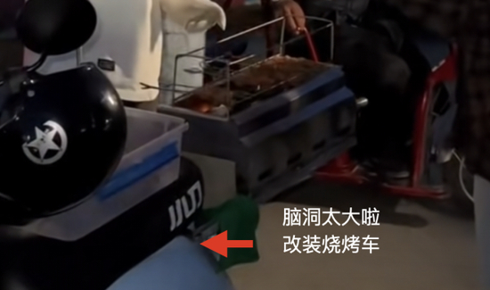 就像视频中的小哥虽没有解决排位难的能力,但他把烧烤搬到了自己的出行工具上,在火爆的烧烤点为还没排到位的旅客先行“解馋”。