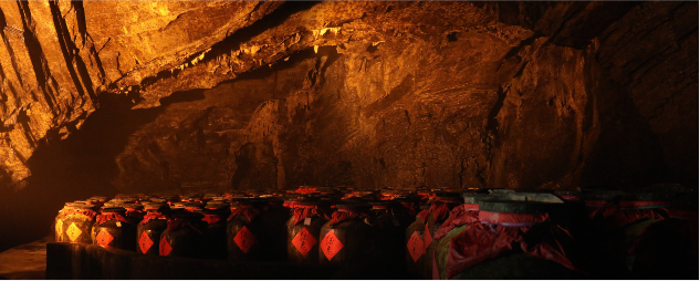 从匠人们手里离开,这一坛坛好酒便在氤氲着淡淡水汽的地窖里静静地贮藏,等待时间赋予的生香反应。在优质的藏酒湿度下,水分子会形成活性循环,慢慢浸入坛壁,与酒分子相互糅合、浸润。