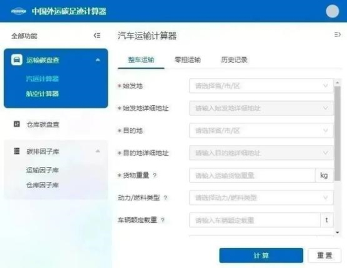 不仅如此,根据国家核算指南、ISO14064、行业相关标准等要求,中国外运详细梳理了仓库及物流链路的所有排放源、排放因子、活动数据、数据来源,打造并上线了“碳足迹计算器”,有助于量化供应链物流环节直接或间接产生的碳排放总量,目前已在汽运、空运和仓储三个业务场景试点应用。通过碳足迹计算器,中国外运能够为客户提供多场景、全链路的碳排放核算,帮助客户搭建数字化碳管理服务体系。未来将进一步与业务系统打通,实现用能及碳排放的实时数字化跟踪与可视化管理,为持续发展绿色物流夯实底层基础。