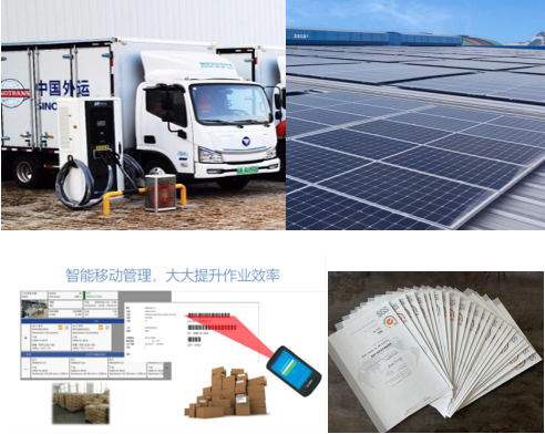 此外,中国外运通过单据电子化、RPA等绿色数字工具打通数据链接,运营数据的智能化采集及分析,大幅降低操作成本,提升运营效率。同时,充分利用仓库屋顶,建设分布式发电设施、充换电等配套设施,节能降耗,加快物流行业清洁能源的规模化使用。
