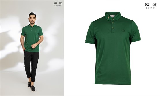 欧度的【功能丝棉】面料主要应用在商务和休闲风格Polo,既维持了都市男士轻商务场合严谨自信的体面形象,又满足了商务办公情境下的舒适性,应对会议洽谈、差旅通勤再也不用怕闷热出汗造成尴尬场面。