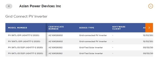 澳大利亚与新西兰推行以"AS/NZS"开头的统一的联合认证标准,产品只要取得一个国家的认证就可在另外一个国家销售。SAA澳大利亚国际标准公司(Standards Australia International Limited)是澳大利亚联邦政府指定的唯一标准制定机构,由其颁布的入网标准AS/NZS4777和AS/NZS 5033则是光伏组件与逆变器进入澳洲市场的强制性要求,即只有符合澳大利亚标准(AS/NZS4777和AS/NZS 5033)的光伏组件与逆变器才能用于光伏系统设计与安装,经核准的产品列表由清洁能源理事会来负责更新。