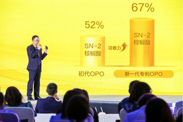 飞鹤星飞帆卓耀的创新还不止于此,飞鹤研究发现,喂养高含量sn-2棕榈酸婴儿配方奶粉的宝宝,在肠道微生物及代谢物质方面,更接近母乳喂养的宝宝的状况,因此添加了新一代OPO,SN-2棕榈酸的含量达到67%,从而更亲和母源“黄金”标准。
