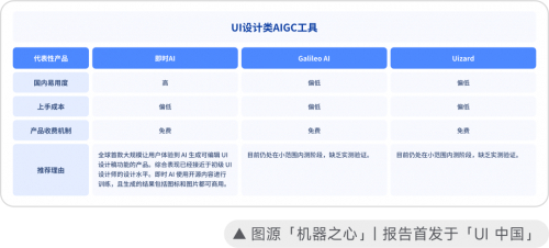 「即时 AI」的大规模内测,也让国产设计工具在世界舞台上取得了一定的领先。根据人工智能媒体「机器之心」的最新报道:目前全球有三款产品可以实现「AI 生成可编辑 UI」的功能,分别是「即时 AI」、Galileo AI 以及 Uizard。其中国外的两款产品仍停留在小范围内测阶段。