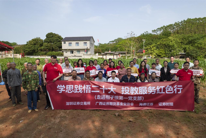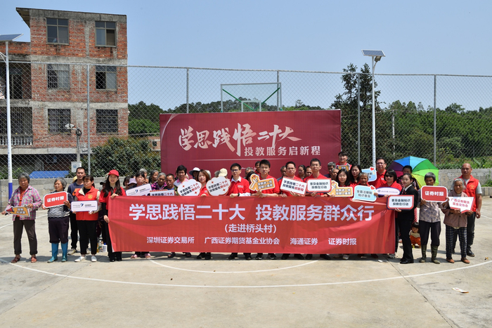 4月25日-26日,深交所联合海通证券、广西证券期货基金业协会、证券时报举办的“学思践悟二十大 投教服务启新程”投资者服务专项活动走进广西钦州市浦北县。在深入开展学习贯彻习近平新时代中国特色社会主义思想主题教育之际,以多载体、多角度、多形式走进乡村小学、村间打谷场、田间地头、红色教育基地,以群众喜闻乐见的方式展开面对面宣传交流,推动投资者教育服务进一步走进乡村基层,助力乡村振兴。