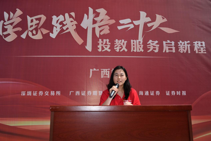 在现场热烈的气氛中,海通证券投教基地的投教人员向村民详细解读全面注册制相关内容:“注册制改革带来的变化是全方位的,给市场参与各方都带来了实实在在的获得感。”浦北县人民法院相关人员还向桥头村村民做了“防范非法金融,守好我们的钱袋子”的报告,她希望村民能够提高防范金融风险意识,从源头上遏制非法金融活动。