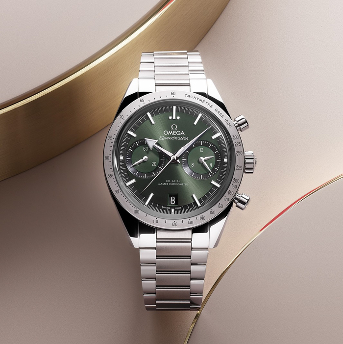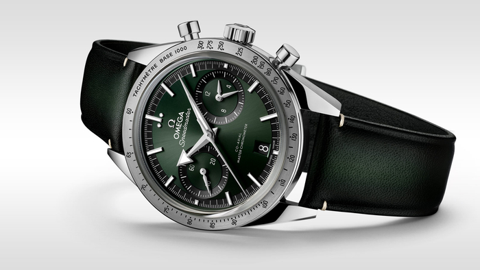 超霸系列腕表是欧米茄的标志性表款,超霸腕表参与了人类截止目前的六次登月任务,充分彰显品牌的先锋精神。这款表的设计灵感源自欧米茄于1957年推出的超霸原型表款 ,表壳直径为40.50毫米,绿色表盘搭配镀铑小时刻度和「阔箭」指针,均覆有白色 Super-LumiNova 夜光涂层。6点位设有日历窗,9点位设有小秒盘,3点位则设有12小时和60分钟计时小表盘。表圈经过拉丝处理,饰有经过黑化处理的测速刻度,表背上镌刻「Speedmaster '57」字样,历史感十足。搭配绿色皮表带,表扣浮雕欧米茄品牌标识。特别值得一提的是,该表内部搭载欧米茄9906手动上链至臻天文台机芯 ,让行家们推崇异常。