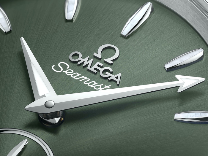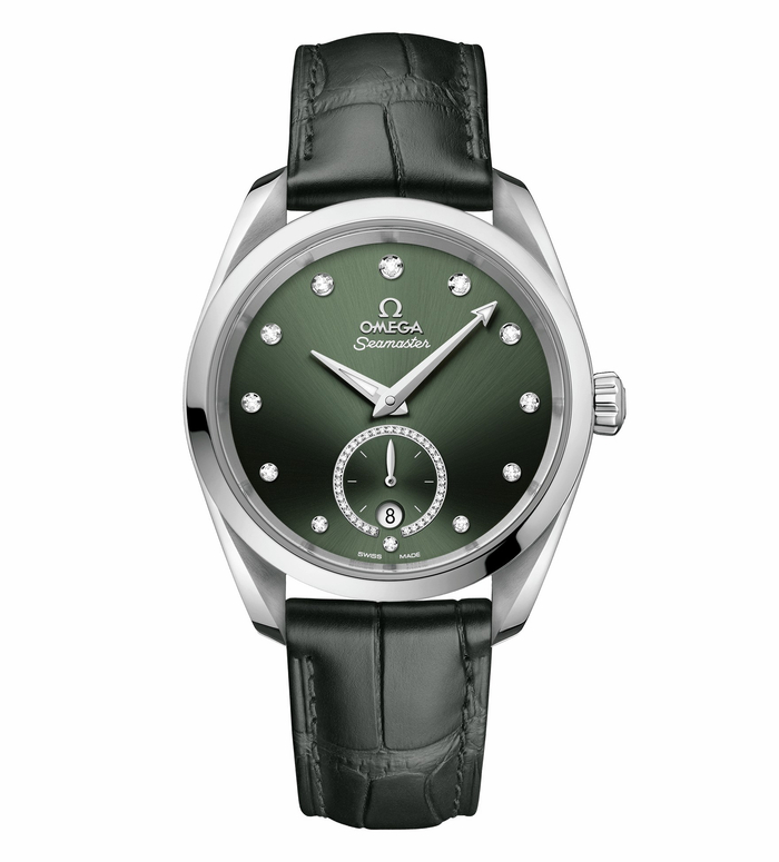 当然,对于许多年轻人来说,海马系列更加运动、更富现代感。这款海马系列 AQUA TERRA 150米38毫米至臻天文台小秒针腕表 显得与传统的海马有很大的区别,更加简洁干练。38毫米直径的不锈钢表壳采用对称设计,表背采用波纹边缘设计。醒目的深绿色表盘呈现出太阳射线打磨效果,6点位设有日历窗,小秒盘的圆环经过镀铑处理,并镶嵌钻石。镀铑指针覆有白色 Super-LumiNova 夜光涂层,依次递增的钻石小时刻度镶嵌于镀铑托槽内。该表搭配深绿色皮表带,与盘面搭配和谐。内部搭载的欧米茄8802同轴至臻天文台机芯 ,通过由瑞士联邦计量研究院(METAS)核准的至臻天文台认证,其精准度、防磁性和整体性能均达到行业的更高标准,特别地实用。