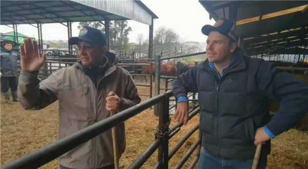 上图为智利牧场国海创联活畜事业部同事与智利合作商