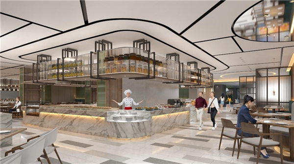 设计后的中西餐厅焕然一新,致力于提供多元化、高品质宴客聚友选择。太极中菜以典雅国风为特色,将中国水墨画、皇家园林风景图以及朱砂红等国色融为一体,餐食上以粤菜为主,地方特色菜品为辅,打造“中国味”用餐体验;汇厨西餐厅为北欧时尚轻奢风格,主要供应中西式茶点及牛排主题自助餐。