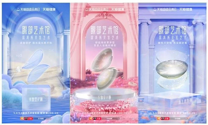 为了让消费者更好的沉浸式挑选色值色号,天猫健康还上线“眼部艺术馆”主题玩法,将每一幅彩瞳幻化为灵动的画卷,向消费者传递美瞳最新的趋势花色,让每一位用户都可在天猫健康收藏自己的“眼部艺术品”。