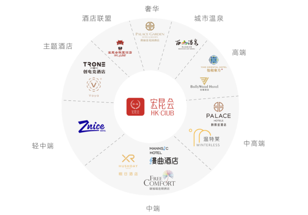 目前,宏昆酒店集团已经开展标准品牌、轻标品牌、非标品牌三项业务,实施差异化和多品牌战略,以“千城万店”为战略目标。其核心品牌包括中高端酒店朗丽兹,中端酒店品牌慢曲,除此之外,奢华品牌朗丽兹花园酒店;城市温泉酒店西山温泉;高端品牌宝欐酒店、怡和东方酒店;中高端品牌温特莱酒店;中端品牌康福瑞连锁酒店、暇日酒店;轻中端酒店嘉伯乐酒店;主题酒店品牌创电竞酒店、芙亚等酒店品牌也都在发展中。