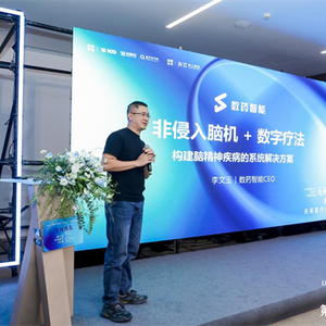 2023年第七届未来医疗100强大会脑科学产业趋势发展论坛上,众多学者、企业纷纷带着脑科学产业最新研究成果亮相。数药智能CEO李文玉发表《非侵入脑机+数字疗法,构建脑精神疾病的系统解决方案》主题演讲,系统介绍了数药智能在非侵入型脑机接口与数字疗法领域的探究,聚焦脑神经疾病的诊断及治疗,树立行业领先的数字疗法高新科技企业的行业定位。