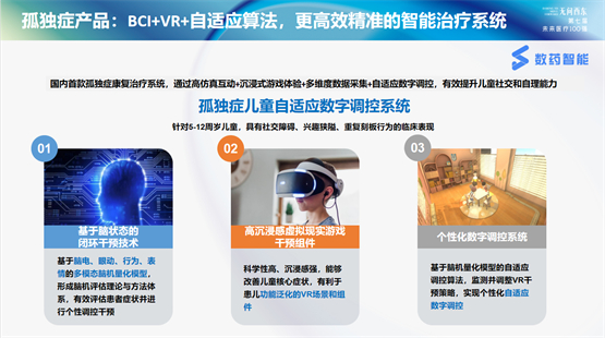 数药智能汇聚了一批优秀的、多领域跨学科的专家,并已完成注意缺陷与多动障碍ADHD《注意力强化训练软件》、孤独症谱系障碍ASD《孤独症康复训练软件》、脑机接品产品《数眠》等多款数字疗法产品开发矩阵,为数字医疗技术更广泛地应用奠定了坚实基础。