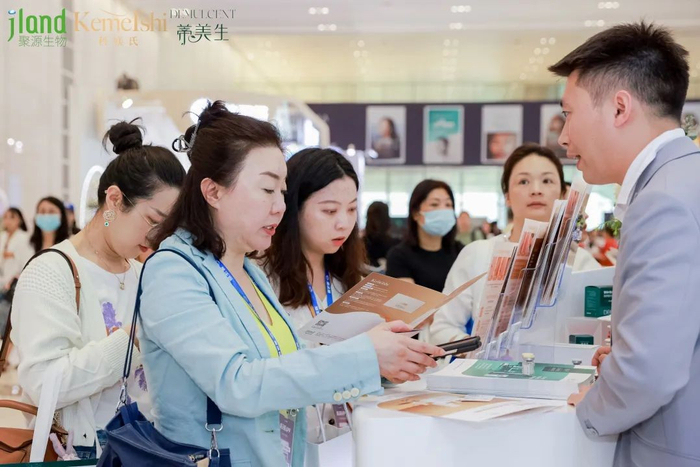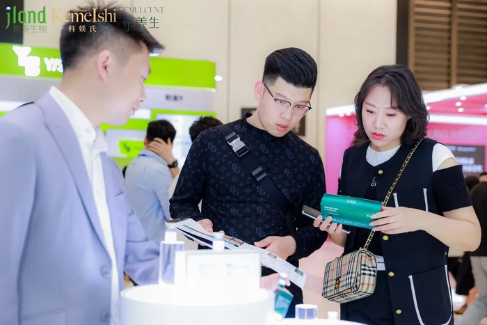 展位上,科媄氏全新重磅推出的重组III型人源化胶原蛋白复配凝胶,有效突破行业技术形态,创新采用冻干复配技术,最大程度上保证胶原活性、稳定性、高质量,真正发挥胶原蛋白紧致抗衰的作用。产品自带科技流量属性,为消费者提供了更高端的胶原抗衰解决方案的同时,又能为机构带来持续的业绩增长,备受参会者青睐。