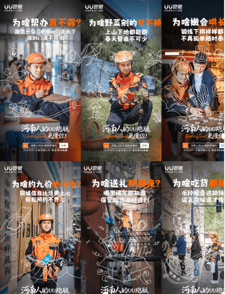 而在线上,借以微信、微博、小红书、官方抖音、视频号等线上多渠道,通过一支“河南人的UU跑腿更懂你”主题TVC,以各个跑男的视角切入到河南本地用户场景——如帮郑州人买的一顿胡辣汤早餐、帮解决麻烦事更稳妥......整体风格以方言质朴、温暖走心为主基调,多位河南人的UU跑腿更懂你打动目标用户群体,增强品牌感知,提升品牌忠诚度。