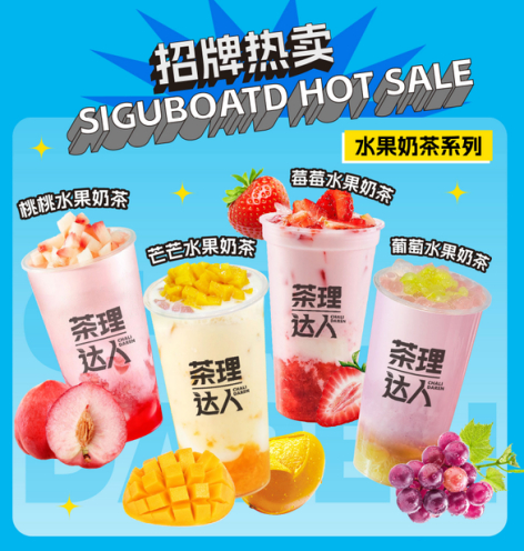 茶理达人首创水果奶茶,还原消费者夏天清爽好心情。