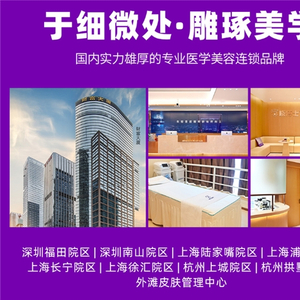 目前,晓博士已经先后在深圳、上海等大型城市,开设数家院区,深圳福田院区、深圳南山院区、上海陆家嘴院区、上海浦东院区、上海长宁院区、上海徐汇院区、杭州上城院区、杭州拱墅院区、外滩皮肤管理中心等多家院区自成立以来,坚持与晓博士总部步调一致、方向一致、理念一致的发展思路,3城10院连锁品牌的大格局也为晓博士真正面向全国布局奠定了坚实的基础。