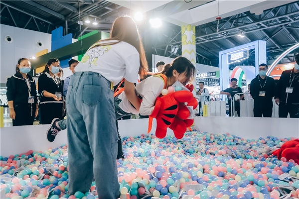 不仅是品牌展区,本次诚实一口还赞助了它博会主题互动区域——“欢乐茸茸岛”的人体抓娃娃机互动游戏。观展消费者在现场各治愈角打卡可集齐茸茸球参与游戏。参与的消费者抓取的试吃装全可收入囊中,不少玩家直呼过瘾。