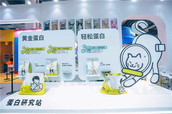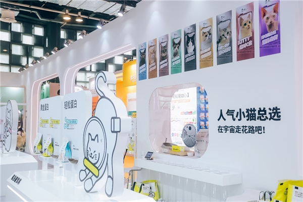 本次以“高蛋白、好蛋白”为产品理念的国产宠粮头部品牌诚实一口也实力出展,通过未来高科技设计理念的“蛋白空间站”前卫设计,打造狗粮专区、幼猫粮专区、成猫粮专区、人气小猫总选、大力锤互动区等多元素互动展位。