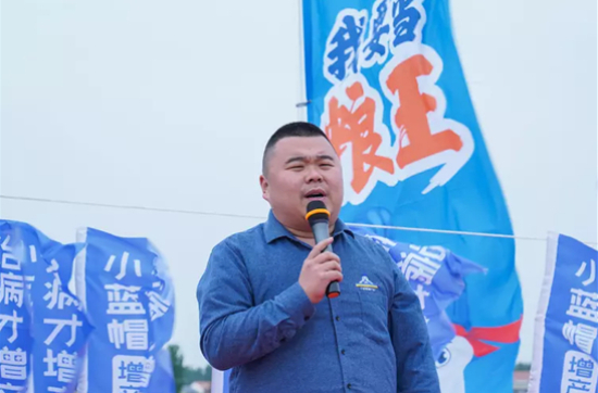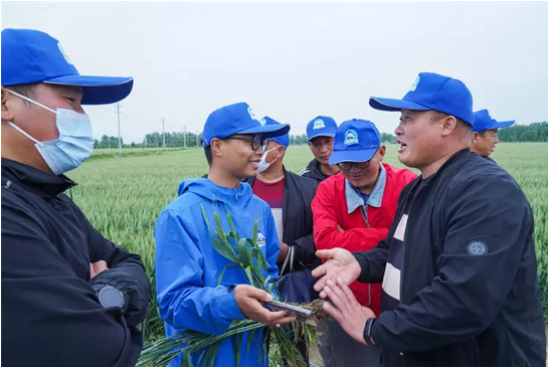 2023年5月6日,豫北长垣市,卫华农场高标准农田种植基地,第五届小蓝帽增产药全国粮王争霸赛观摩会现场,卫华农场技术部负责人牛建明部长表示,“公司期待与小蓝帽共同努力,一起为国家粮食安全生产做贡献”。