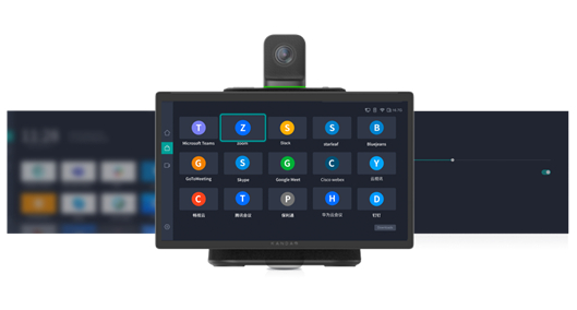 KandaoMeetingUltra与KandaoMeetingUltra标准版是集成4K高清全景摄像头、全定向麦克风、高保真扬声器、视频会议主机、无线投屏器一体化设计的会议终端产品,连接电源即可使用。内置安卓系统,配备完善的操作界面,兼容钉钉、腾讯会议、飞书、Zoom、Teams等多种主流会议软件,用户可便捷地在本机下载和启动视频会议软件。安装使用简单方便,无需复杂接线,一机即可解决会议所有问题,是企业会议室数字化升级的首选。