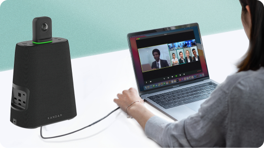 KandaoMeetingUltra与KandaoMeetingUltra标准版均搭载两颗超广角镜头,可实现实时360°画面采集,突破传统摄像头视角局限,令每位参会者无需拥挤在一个网络摄像头前,人人都可自由入镜,舒适开会。