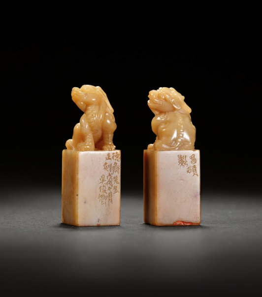 清·吴昌硕刻古兽钮寿山石胡钦自用对章