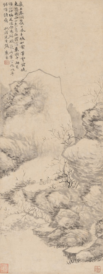 黄易在书、画、印三个领域都有极高的造诣,往来信札中多有对其作品的求索。专题中就有一件为应邀之作。上款人吴友松为阮元好友,乾隆年间曾幕游山左,阮元所辑《小沧浪笔谈》中收录有吴氏诗文绝句。1793年吴友松致信黄易表达仰慕之情并委婉请索:“友松爱先生之画与印章,犹乎先生之爱金石文字,先生能以一画一印以副友松之望乎?” 而本幅山水即应为黄易回应吴友松求画之作。本幅山水以淡远含蓄的笔墨表现南田诗意,格调之高,在乾嘉金石圈中绝无仅有。
