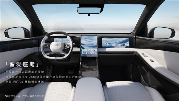 值得一提的是智爱座舱,量产旗舰级座舱芯片8155+全新银河N OS让用户零学习、秒上手;拥有开放的内容生态,一个超级ID,提供全方位的生活+娱乐+出行服务,可实现开放生态多端融合与打通;车机即手机,秒上手,秒触达,秒响应。