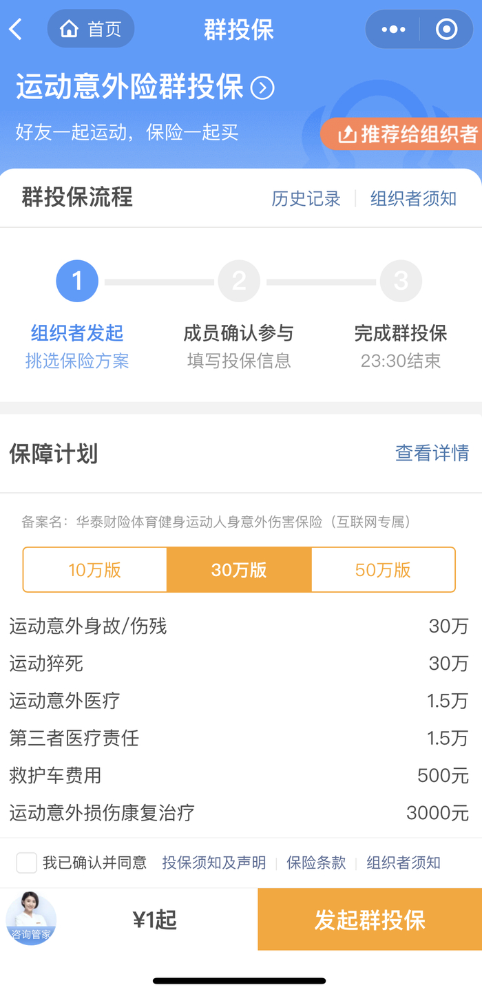此外,“投保帮手”中还有一款基于社交关系的投保工具——“群投保”,意在解决群体运动、团队出游、职场用工等群体投保场景下用户“收集多人信息费时、费力”的难题。活动组织者只需发起在微保小程序中填写参团人数等信息后转发到微信群中,即可邀请社群内用户一起参与投保。