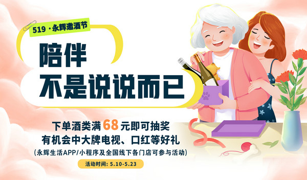 陪伴是生命的温度和情感的归宿,走过漫长的人生旅途,我们愈发懂得陪伴的珍贵——那些美好的纪念、温馨的时刻、永不褪色的回忆,都是陪伴带给我们最好的礼物。家人的陪伴见证了我们每一阶段的成长,好友的陪伴让我们在踏上人生征途时更加勇敢坚强,爱人的陪伴让我们在这无常世间感到温存。缘始于酒,情长于陪伴,在永辉生活519邀酒节之际,永辉生活-咏悦汇酒库携全球优价好酒,邀您共同感受陪伴的温暖与力量。