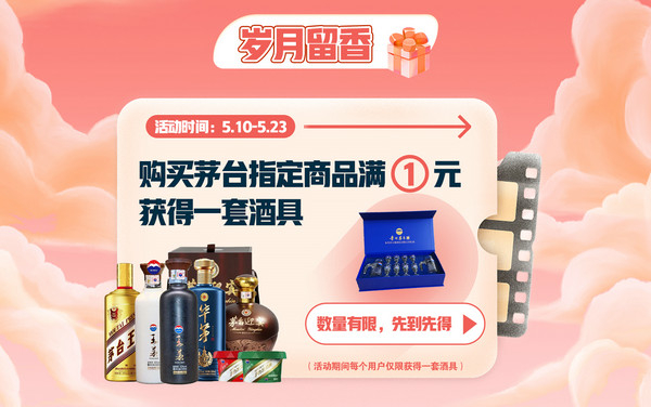 有爱人陪伴在身边,让人既心动又心安,因爱意彼此分享生命的纷呈,这是浪漫的双向奔赴。和爱人一起开瓶好酒,忘记世间嘈杂,让岁月留香,让爱定格此瞬。自5月10日起至5月23日,永辉生活-咏悦汇酒库推出购买茅台指定商品满1元获得一套酒具(活动期间每个用户仅限获得一套酒具),数量有限,先到先得。参与活动的有茅台王茅酒(祥雅/黑)500ml、茅台王茅酒(祥邦/白)500ml、茅台华茅酒(蓝)500ml、53度茅台迎宾(坛装尊享)2.5L等酒品。