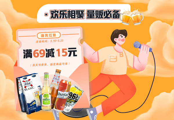 自5月10日起至5月23日,永辉生活-咏悦汇酒库发放满69减15元的酒类红包(当天可使用,指定商品可用),1664桃红啤酒330ml、夏日纷苹果味酒330ml、乌苏啤酒500ml、SUNTORY-196°柠檬配制酒等酒品参与活动。自5月10日起至5月23日,另推出多款果酒优惠活动,自然甜蜜本味寒造百香果凤梨味气泡米酒330ml日常零售价为14.9元/瓶,活动期间仅8.9元/瓶;不冲不辣、刚好微醺的咏月楼桂花味米酒350mL日常零售价为26元/瓶,活动期间16.8元/瓶;原果发酵、口感清冽的聆惑西打酒混合装330ml日常零售价为39.8元/组,活动价期间仅25.8元/组。酒浓情更浓,让我们铭记彼此陪伴走过的旅程,对酒当歌,来日方长。
