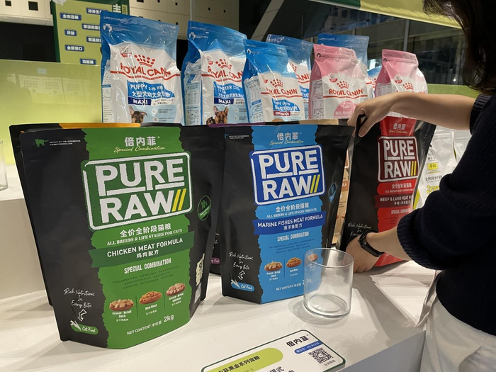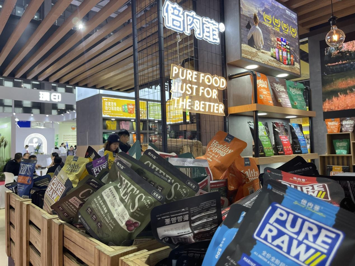据《2022年中国宠物行业趋势洞察白皮书》显示:2022年度犬常见就诊原因TOP2为胃肠炎、70.6%的用户期待狗粮具有调理肠胃的功效。本次它博会亮相的黑金系列洞悉宠物营养趋势,从采食、消化、吸收、代谢、利用到排泄的每一环节,倍内菲先研实验室基于全新营养关爱理念进行深度研究,以主粮+冻干生骨肉、冻干鸡胸肉、冻干鸭胸肉的特色营养结构搭配,辅以益生菌+益生元,关注宠物免疫体系和肠道养护系统的构建。