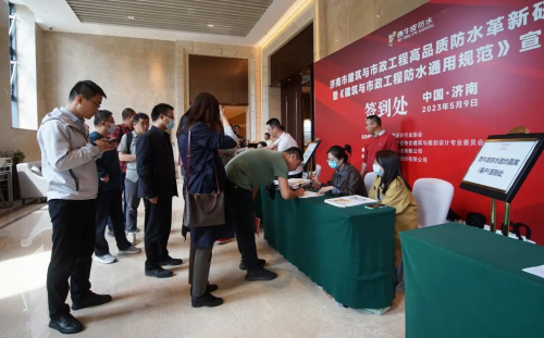 济南市房地产业协会执行副会长李刚,济南市房地产业协会秘书长于泉,济南市勘察设计行业协会秘书长陈文博,同圆设计集团有限公司总建筑师王春堂,同圆设计集团有限公司副总建筑师周瑞雪,同圆设计集团有限公司技术质量中心主任丁常虹,《建筑与市政工程防水通用规范》参编专家、中国建筑科学研究院建材所防水防护与修复技术中心主任、中国工程建设标准化协会防水防护与修复专业委员会副秘书长、中国建筑学会建筑防水学术委员会专家委员王海龙,西牛皮防水科技有限公司副总经理兼技术总监、高级工程师、中国建筑防水协会专家委员会委员郭文雄等五百余名行业专家、学者及建筑防水行业精英齐聚一堂,分享交流共同为防水新规的全面贯彻实施建言献策。