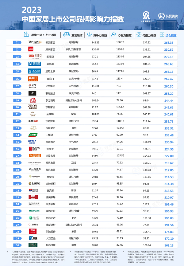 权威发布 | 2023中国家居品牌影响力指数报告,30家上市公司上榜