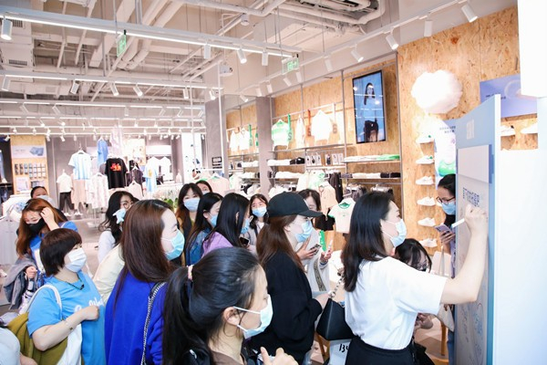 新店借助代言人形象展示新基本产品风格,吸引众多粉丝自发来到门店参与互动,成为商圈一大风景线。店内森马云货架、科技绿幕免费体验,满足消费者轻松购物与打卡需求,吸引达人博主们潮涌进店围观;现场消费者纷纷试穿,热闹非凡。优质体验让话题传播水到渠成,助力拉拢更多高品质人群。