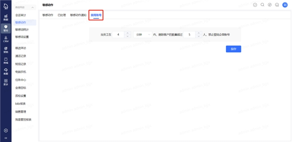 除此之外,如果有销售因为工作不愉快离职,在离职之前,疯狂删除客户报复公司,那后果不堪设想。为了避免此类事件发生,主管可以在探马SCRM后台设置,“在规定时间内,删除客户量超过XX人,即可禁用其企微账号”,留住客户资源。