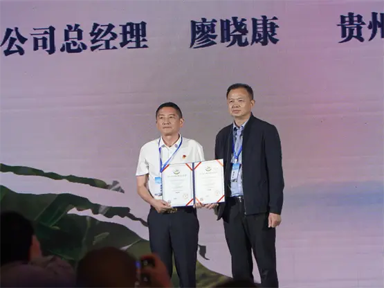 贵州省气象学会副理事长胡跃文为信天授予“农产品气候品质认证证书”