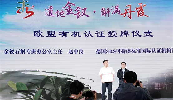 会上,赤水斩获“中国天然氧吧”、“国家生态市”、“绿水青山就是金山银山实践创新基地”、“中华环境奖”等荣誉,赤水金钗石斛获“欧盟有机认证”、“气候好产品证书”、“农产品气候品质认证证书”、“绿水青山生态产品认证”等多项荣誉。