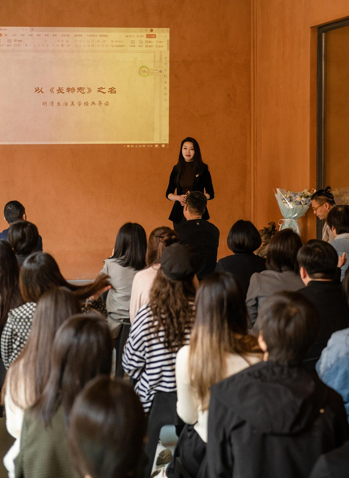 余闻荣老师向我们介绍了明代文震亨书成于崇祯七年的古代生活美学典籍《长物志》,以图文并茂的形式展示了书中的内容,并逐一对其讲解。