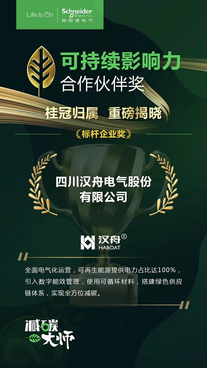 不仅如此,汉舟电气还通过设置光伏设备和购买绿电等方式,实现了“自身可再生能源提供的电力占比达100%”。未来,“在新的工厂,我们会持续加大这方面的投入,尽可能去达到自己用电的平衡。”在对未来的规划中,叶春志认为通过在全产业链推广节能减碳才能最大化“可持续发展”的价值。“汉舟电气之所以制定可持续发展战略,有一部分原因是受到了产业链顶端企业的影响,我们也会将这一理念继续向下游传导。”叶春志介绍说,现在,汉舟电气也在尝试将自身产品上结合应用施耐德电气的智能配电系统,推荐给下游的客户尝试使用,从而带领更多企业引入数字能效管理,搭建产业绿色供应链体系,最终共同实现全方位减碳。他强调说,虽然可持续发展战略对于企业而言是必然的趋势,但是将可持续成长战略在更广泛的企业当中推广并被采用,还将是一个长期的过程。“没有爬不上的山,只有找不到的人。”他对未来充满了信心。