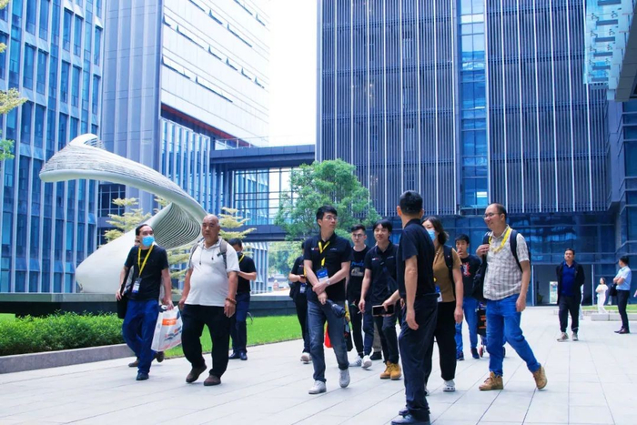 除了人气爆棚的明道展位、竹洞村系列活动之外,展会期间众多行业专家、领导、老师等莅临明道总部指导交流,参观了明道新大楼——明道中心。明道中心位处广州市花都区文商旅融合发展核心区,总建造面积达 80,800㎡,拥有5A甲级标准商办配置及国际商办管理服务,从灯光、园林、空间设计、建筑融合自然与人文、现代美学与功能兼备的匠心之作,是广州空港经济区城市新名片。