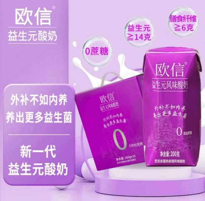 欧信益生元风味酸奶是一款真正意义上的“全营养酸奶”,不仅包含了优质的蛋白质、钙、维生素等营养成分,还添加了婴幼儿奶粉中常见的“益生元”有益成分,每瓶酸奶中添加了14g益生元成分。