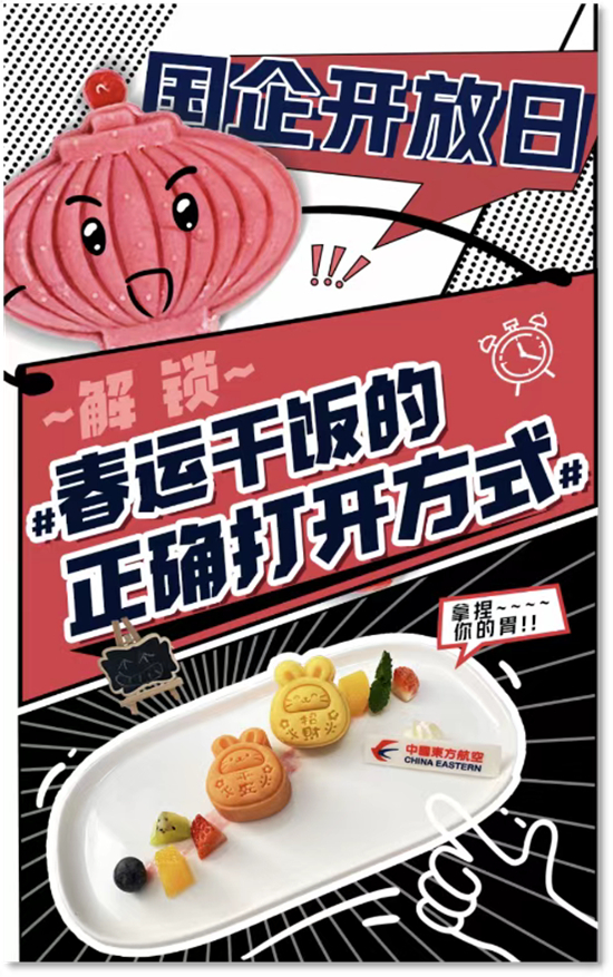 东航也积极在互联网上打造航空产品“品控管家”。为了能收集到真实而广泛的旅客意见,东航创新设立“云开放日”,带领网友“云参观”航空场景、“云体验”航空服务、“云打卡”飞行美景,并根据需求动态升级各类航空产品。如深受好评、被国际权威媒体评为2018全球最具影响力航空餐的“东航那碗面”,荣获全球餐饮榜“最佳航空文创五星奖”的“东航那杯茶”,就是东航在创新航空产品方面取得的实践成果。此外东航还先后推出了机上特饮“明亮前程”“东航盲盒”“特种车积木”等多个网红产品,推陈出新的步伐从未放缓。