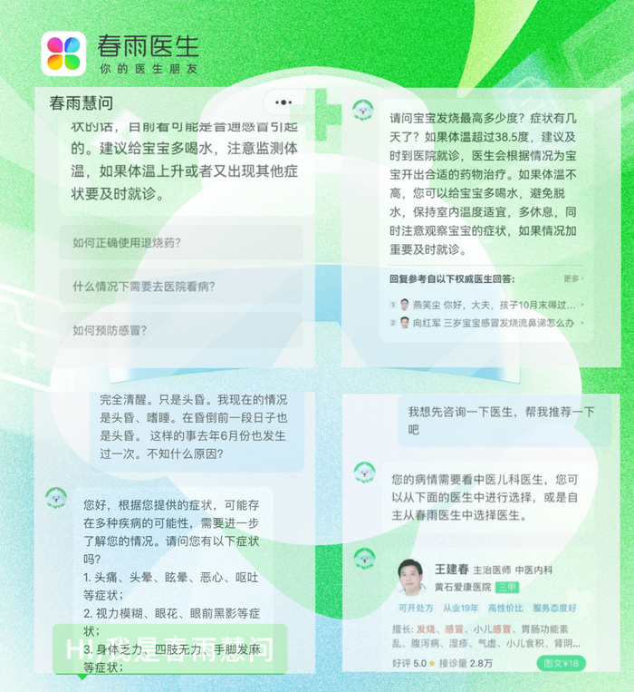 春雨医生首发大模型AI问诊产品“春雨慧问”正式免费开放